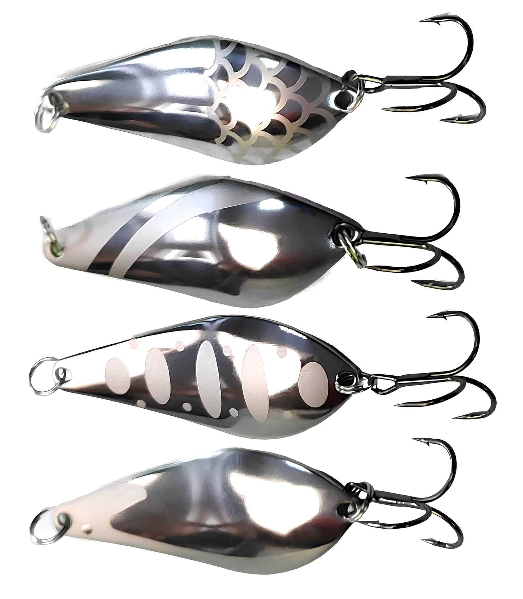 Колеблющиеся блесны отличаются разнообразием форм, но на некоторых из них можно увидеть дополнительные элементы, такие как плавники. Эти плавнички служат для стабилизации игры приманки как в поперечном, так и в продольном направлении, уменьшая вероятность срыва во вращение при активной проводке.