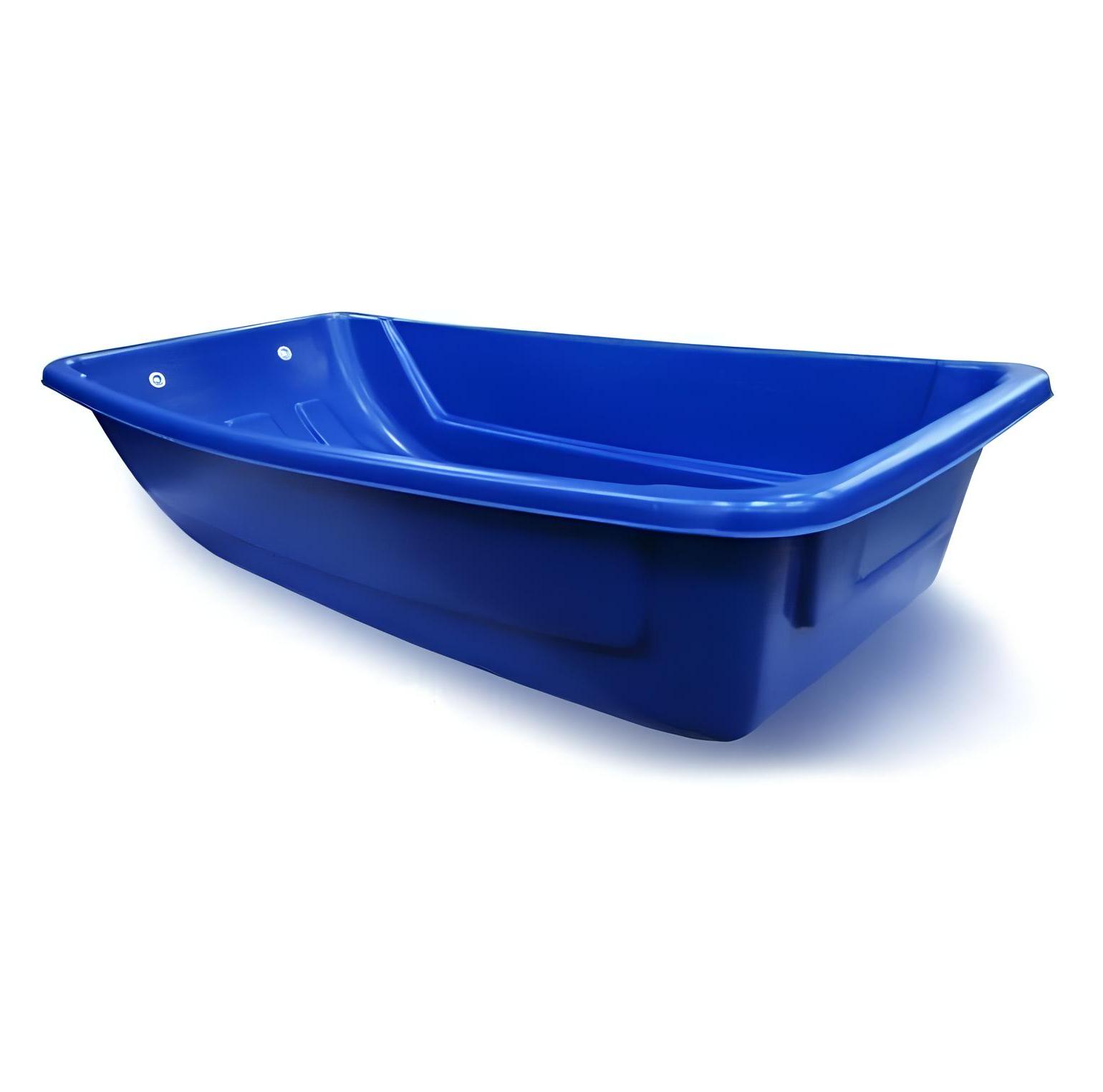 Производители предлагают рыбацкие сани  из пластика с широким дном и высокими бортами. Пластик — лёгкий и морозостойкий материал, который не прилипает к снегу, что обеспечивает хорошее скольжение по снегу. Широкое дно придаёт саням устойчивость на снежных ухабах. Сани изготовлены методом формования. Для удобства в использовании предусмотрены люверсы. Некоторые модели оснащены полозьями, что позволяет им легче скользить по снегу. Для защиты от снега, который может забрасываться при высокой скорости транспортировки, предусмотрены отбойник и капот. Существуют модели с креплением для рыболовного ящика. Высокопрочное корыто отличается малым весом.
