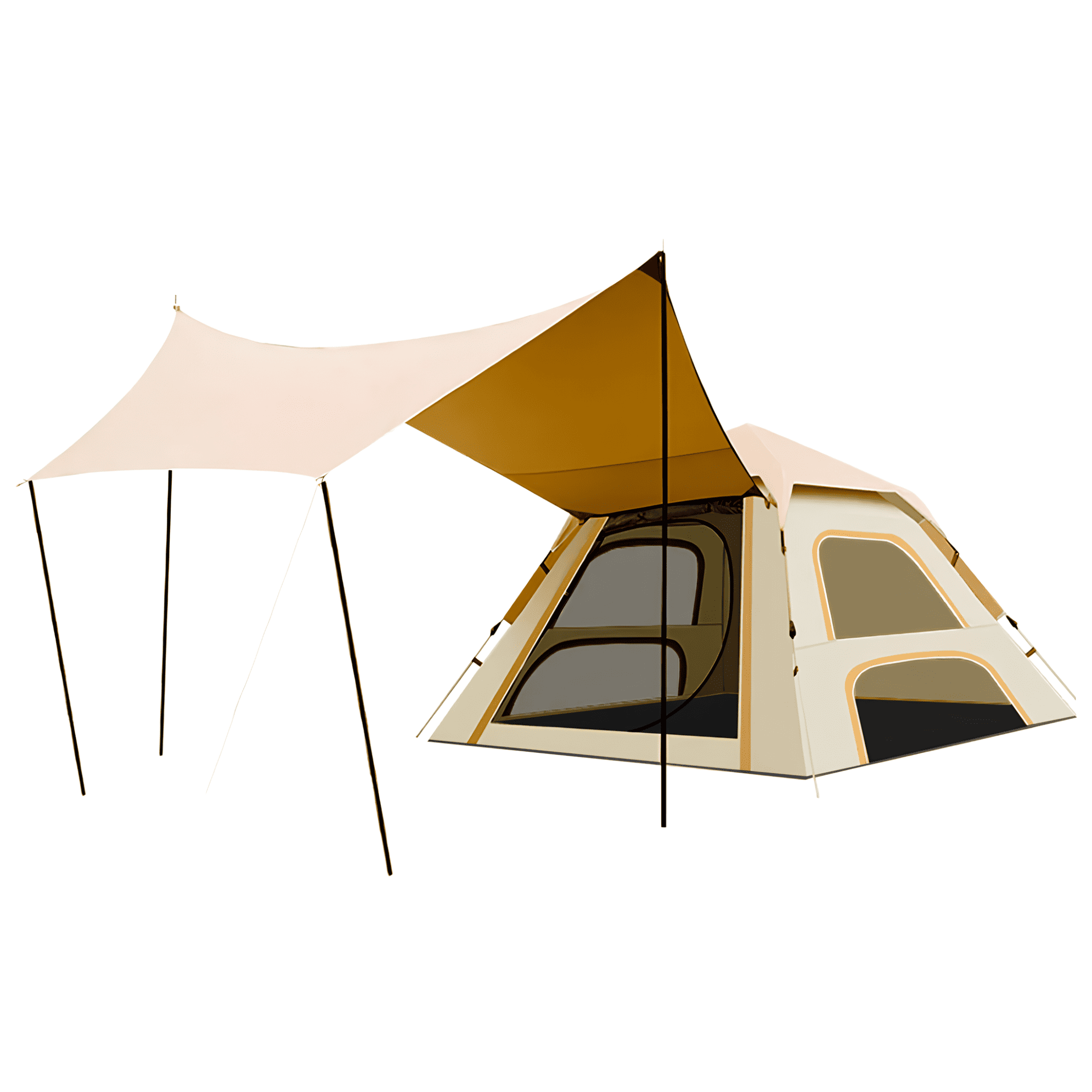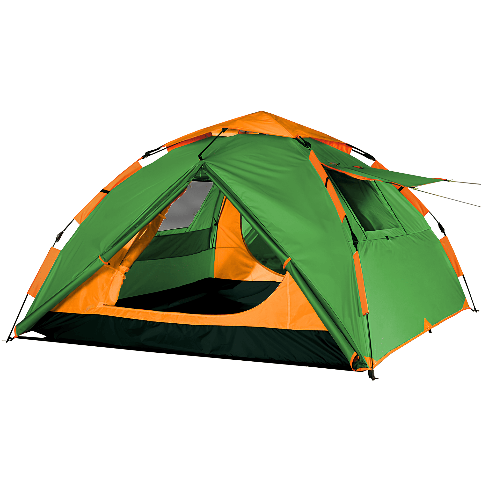 В больших палатках-шатрах предусмотрено несколько входов для удобства эксплуатации и дополнительной вентиляции. В отличие от остальных палаток, в кемпинговых есть окошки, ведь для них очень важен эффект домашнего уюта. Также этому способствует наличие различных приятных мелочей, таких как множество кармашков, подвесных полок, крючков, за которые можно повесить, например, светильники.